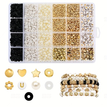 2064 pezzi di perline di argilla Kit per la realizzazione di braccialetti 4 colori oro/perline con lettere Heishi perline gioielli per trovare componenti per adulti gioielli